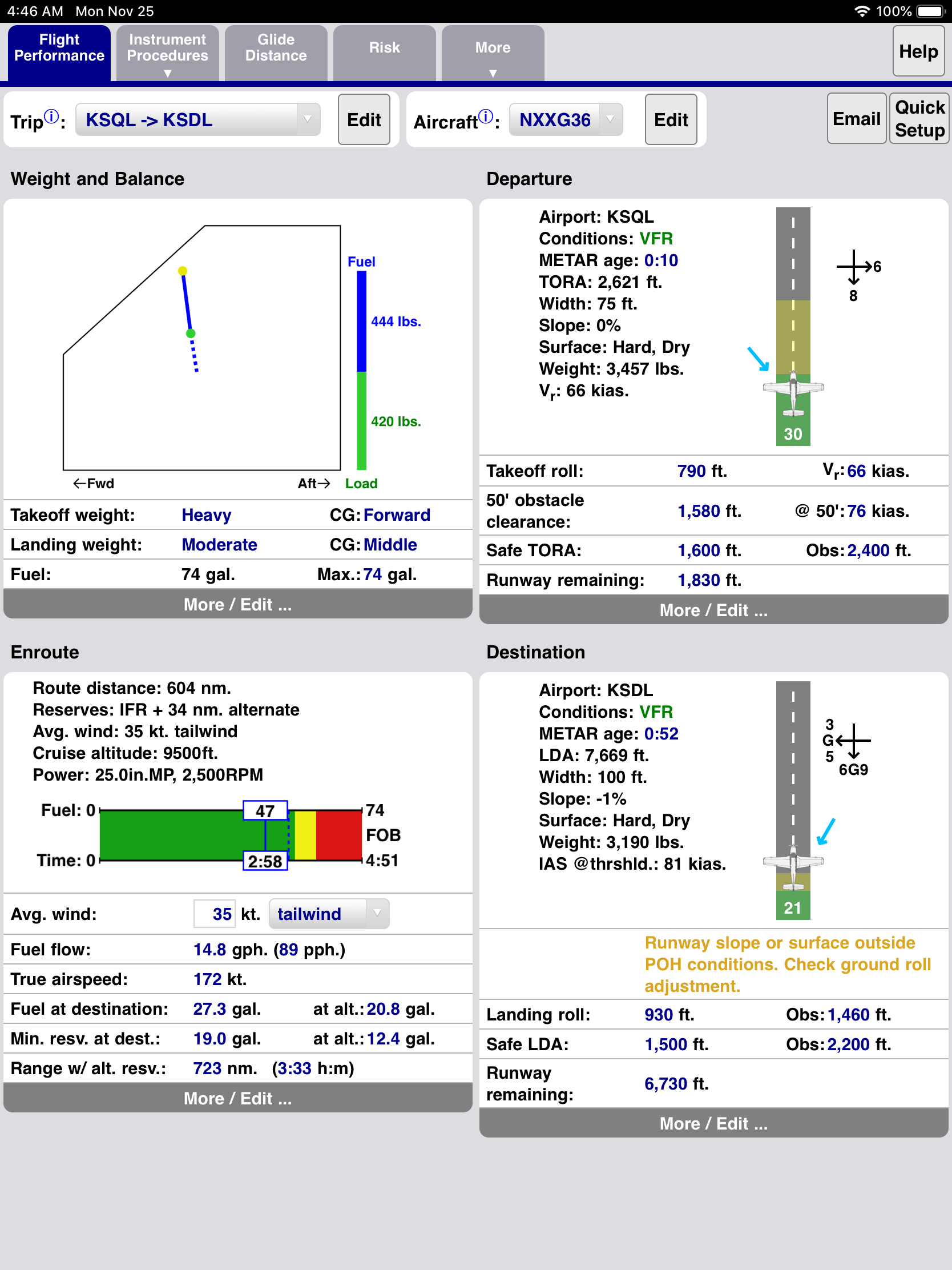 Enroute fuel, time, reserve diagram