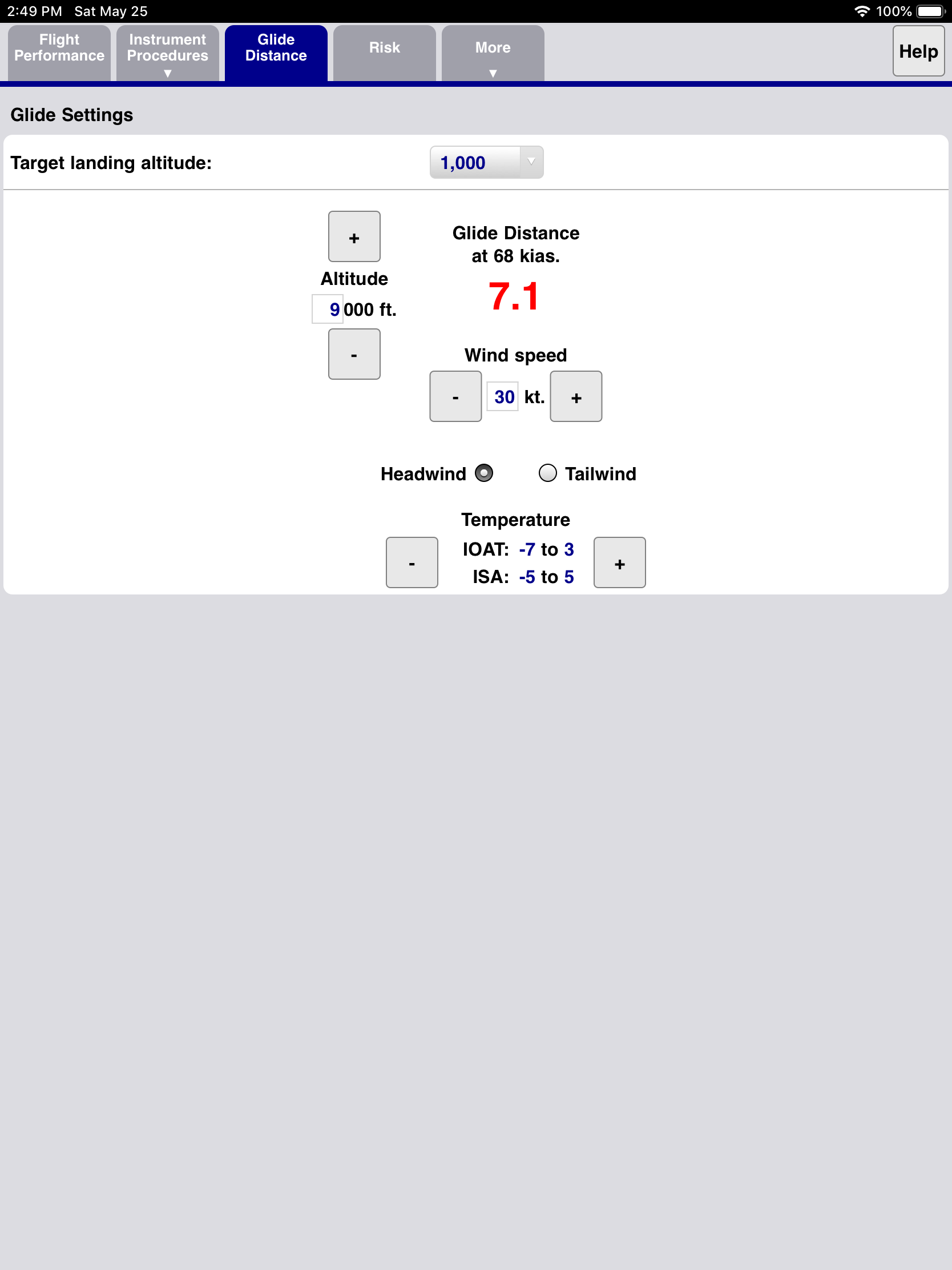 Climb rates and gradients with and without wind